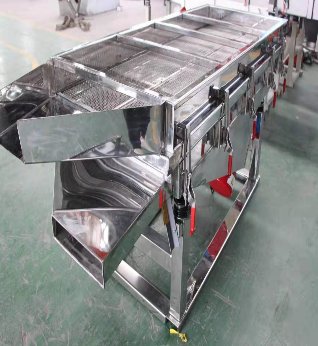 物料从给料机均匀地进入筛分机的进料口,通过多层筛网产生数种规格的筛上物、筛下物、 分别从